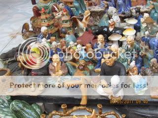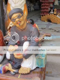 Hơi hơi giống nhỉ? Có điều “ông thày bói” già hơn một tý. Những sản phẩm của làng nghề Việt Nam, nhìn thoáng có vẻ ngô nghê và dễ bị coi thường bởi những kẻ ngạo mạn, có xu hướng thời thượng theo Tây học vì tính sản phẩm gía rẻ của nó. Nhưng đấy chỉ là những thứ tư duy “ở trần đóng khố” theo kiểu “Đồng hồ Tây thì có bao giờ sai”. Bạn hãy nhìn kỹ xem: Chúng rất có thần và lột tả rất đặc trưng trạng thái chủ đề. Chưa nói đến tính minh triết sâu lắng trong những hình tượng nhân vật. Để tạo ra những hình tượng này phải là những bậc thầy của nghệ thuật và truyền lại cho đám con cháu như ông chủ tiệm trong hình trên.