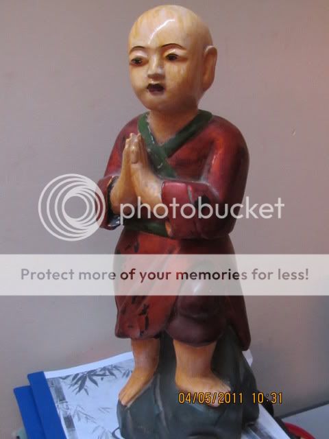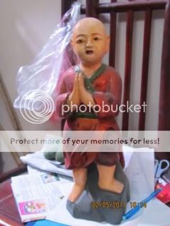 Một pho tượng giả cổ…Một chú tiểu mặc áo cài vạt bên trái….Tất nhiên đây không phải là “di vật khảo cổ” , Nhưng là di sản văn hóa phi vật thể, nó có mối liên hệ với tất cả những bản văn cổ, những di sản phi vật thể còn lại trên đất nước này. Tôi hỏi mua và không trả giá: Có 400 ngàn đồng ở một tiệm bán đồ lưu niệm gần chợ.