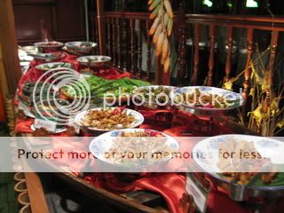 Các món ăn dân tộc ở nhà hàng. Trong đó có một món rất giống bánh Tét của Nam Bộ.