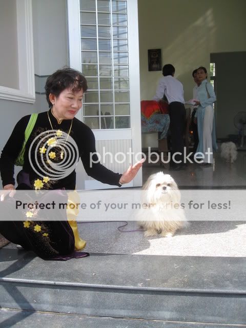 Con chó này đẹp phải không các bạn. Trước đây bà xã tôi nuôi nó đấy. Lạy Chúa! Bà ấy nuôi nhiều quá. Hơn 20 con vừa chó vừa mèo. Tôi cằn nhằn mãi vì chúng nó sủa inh ỏi, bà ấy mới đem cho bớt. Bà Tâm được cho con này, khi chúng tôi xuống đến nơi, nó vẫn nhớ và chạy ra mừng.